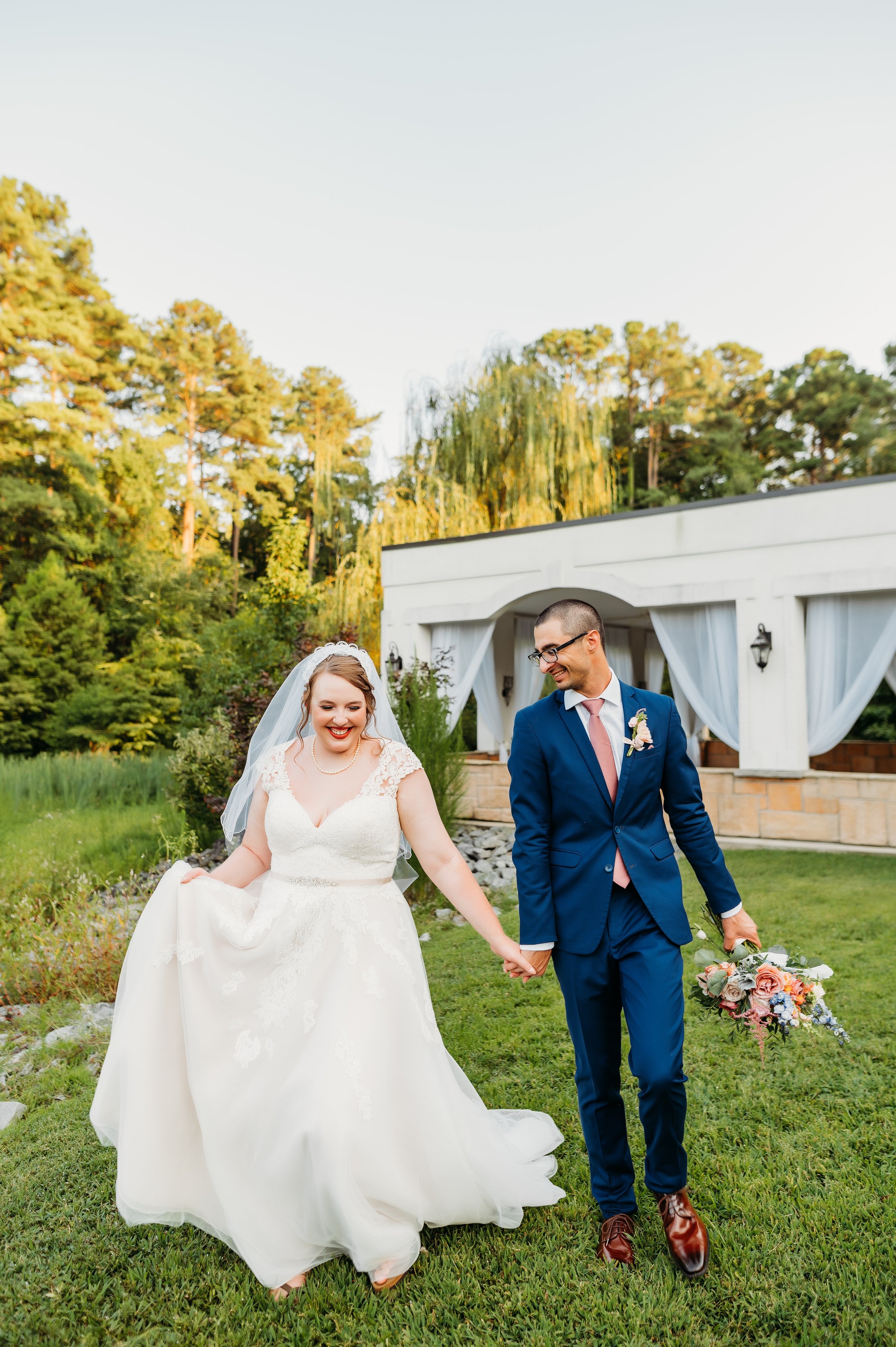 Alex and I said our “I Do’s” on August 5, 2023 in the stunning back gardens of Vizcaya Villa in Fayetteville, NC. It was the best day of pure bliss. When I close my eyes, so many vivid memories come flooding into my mind. I remember the smile Alex flashed me leaving the house that morning, his words “Hey, we’re getting married today!” as he enveloped me in the biggest hug. I remember walking out of the curtain with my wedding dress on, the way it felt to have my hairstylist add the final touch — my mom’s wedding veil — my mom beaming with pride beside me. I remember watching Alex turn around in our intimate first look, the way he made me feel like the most beautiful bride with a simple “Wow.” I remember the words I wrote in our personal vows, the way I sealed the letter, just in time, with “To Alex, my husband :)” and shed a small tear at the very sight. I remember someone saying “Alright Jen, it’s go time” as the sound of “The Adventure” started playing through the loudspeaker. I remember the pep talk I gave myself in my head as I rounded the corner — “Don’t cry, don’t cry, don’t cry.” But most of all, I remember the moment I walked down the aisle, both my parents by my side, all eyes on me, to a piano version of “Lover”, about to embark on the journey of a lifetime. Everything around me blurred as I locked eyes with Alex, the realization that we were here, celebrating this moment, our moment, with all of our favorite people. It’s a feeling I wouldn’t trade for anything.